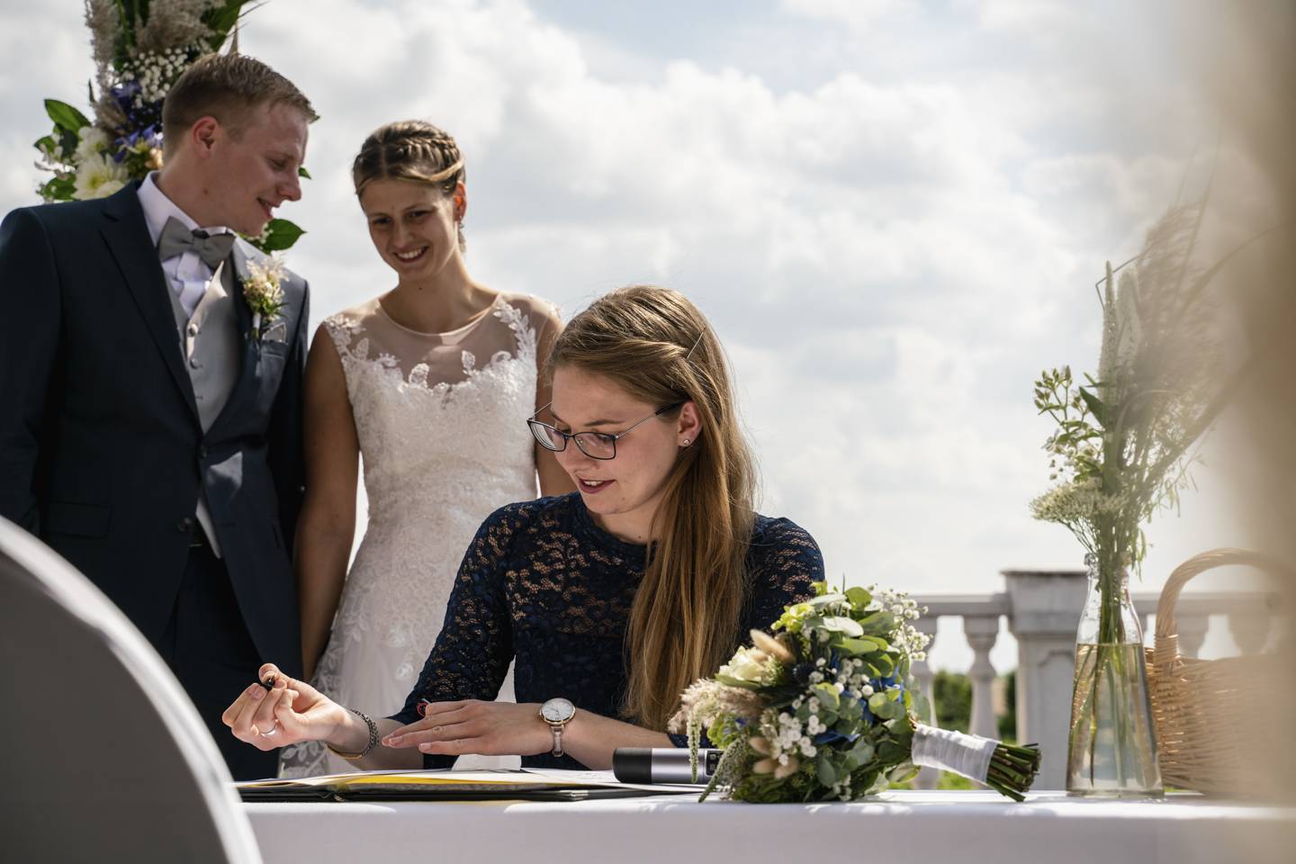 Die freie Trauung unter blauem Himmel und vor einer bezaubernden Landschaft war ein unvergesslicher Moment voller Liebe und Emotionen.